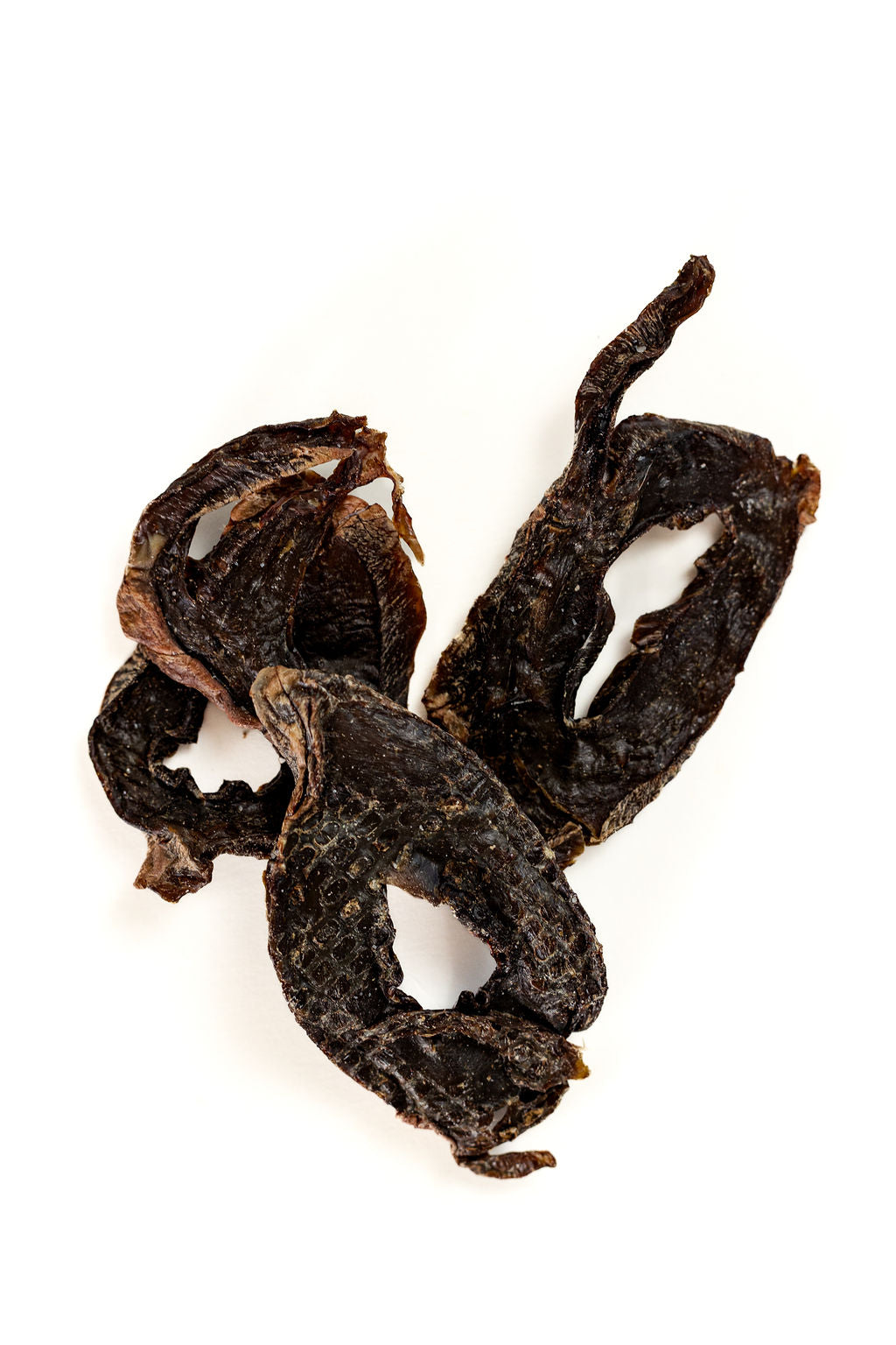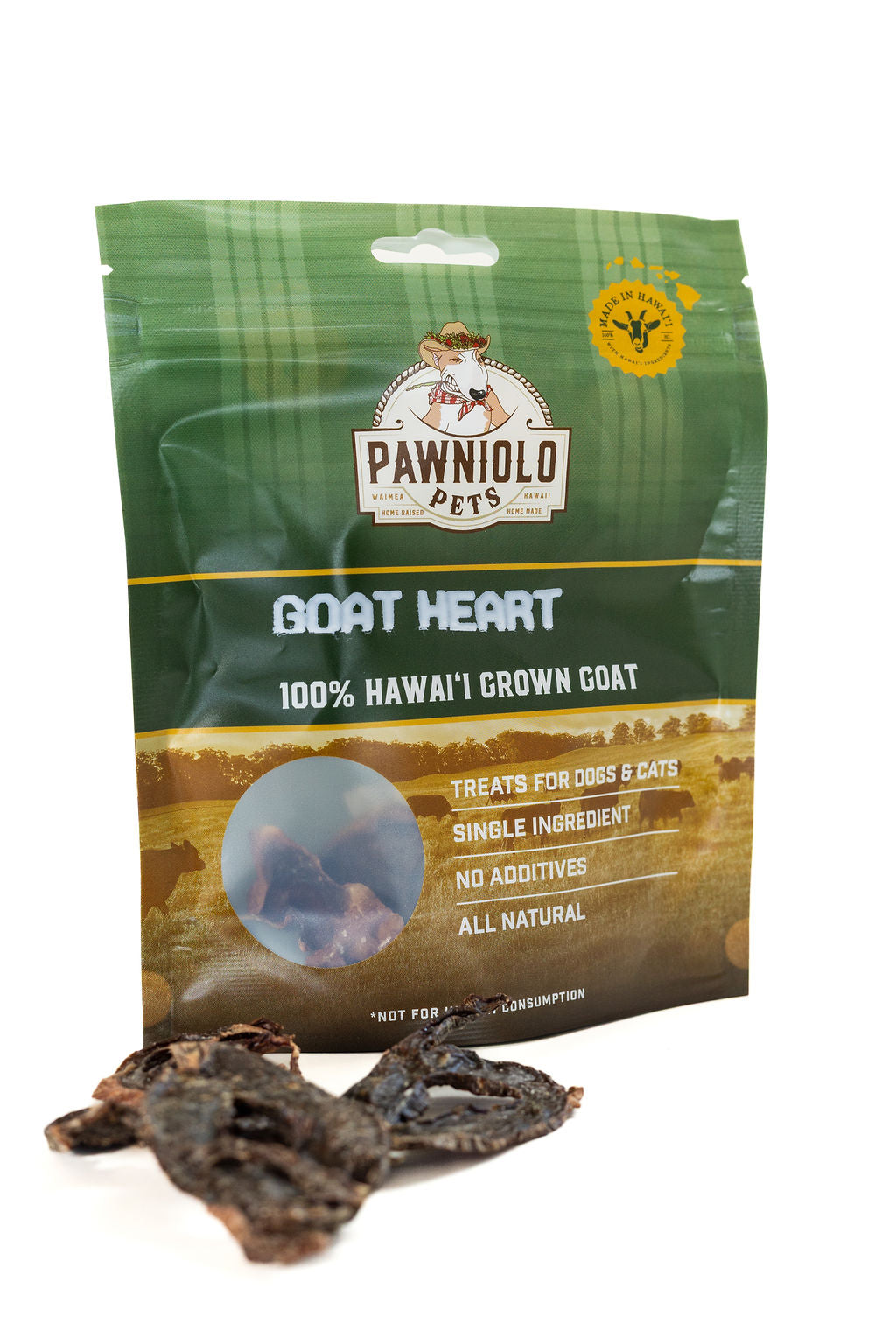 Gently dehydrated 100% Hawai'i Goat Heart treats. Goat Heart is thinly sliced and dehydrated.