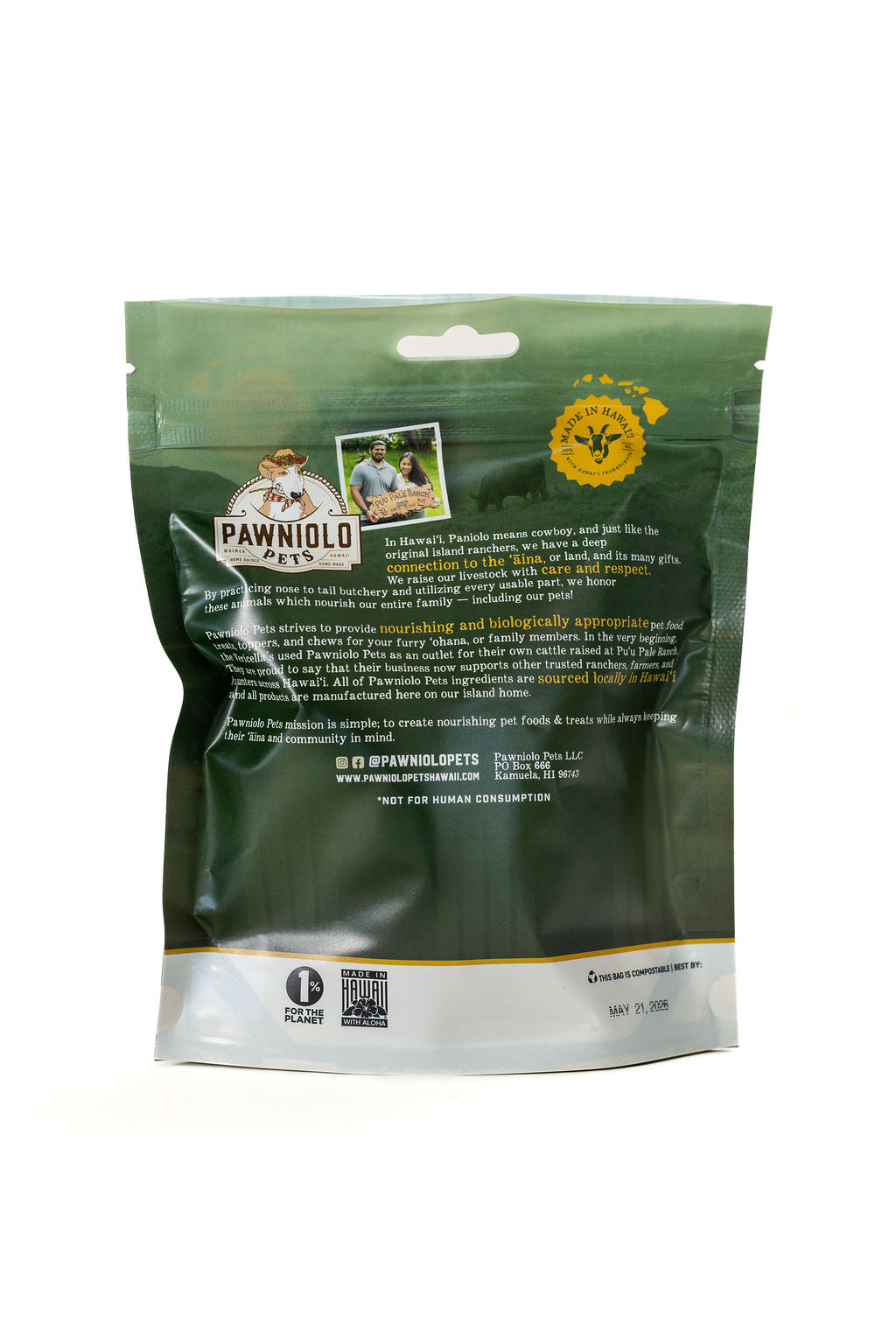Gently dehydrated 100% Grass Fed & Finished Hawai'i Goat Green Tripe treats. Goat Green Tripe is ground and dehydrated in breakable sticks.